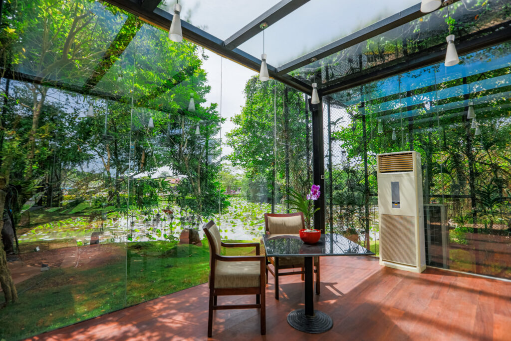 Surrounded by a breathtaking sanctuary of fifty thousand orchids in full bloom, our iconic glass cube restaurant offers an unprecedented dining experience that captivates from first glance.
